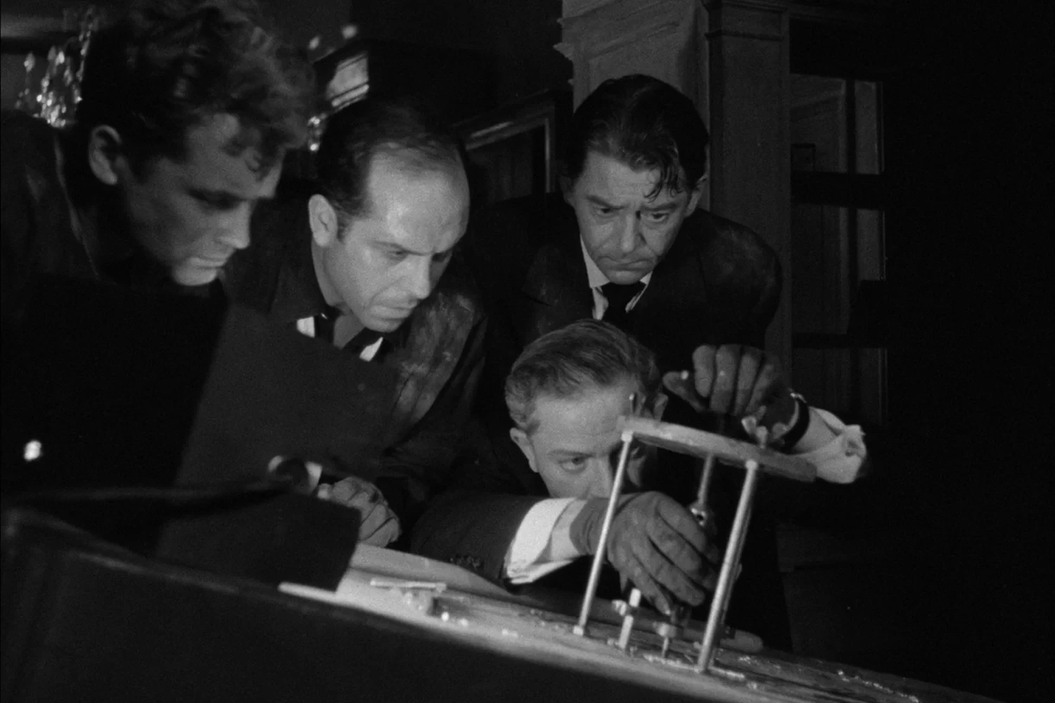 Пока не убежали от «Мужских разборок», стоит вспомнить, что изначально этот фильм должен был снимать Жан-Пьер Мельвиль — французская икона криминального жанра, автор культового «Самурая» с Аленом Делоном и один из главных мастеров немногословного кино. Тогда, в 1955 году, он решил уступить работу оголодавшему Жюлю Дассину. Но, как оказалось, лишь для того, чтобы через 15 лет снять всё то же самое, но на свой неповторимый манер — в холодных цветах, леденящих душу взглядах и в гробовом молчании, на этот раз растянувшемся не только на сцену взлома (столь же отточенного, как у Дассина), но и на весь остальной фильм.