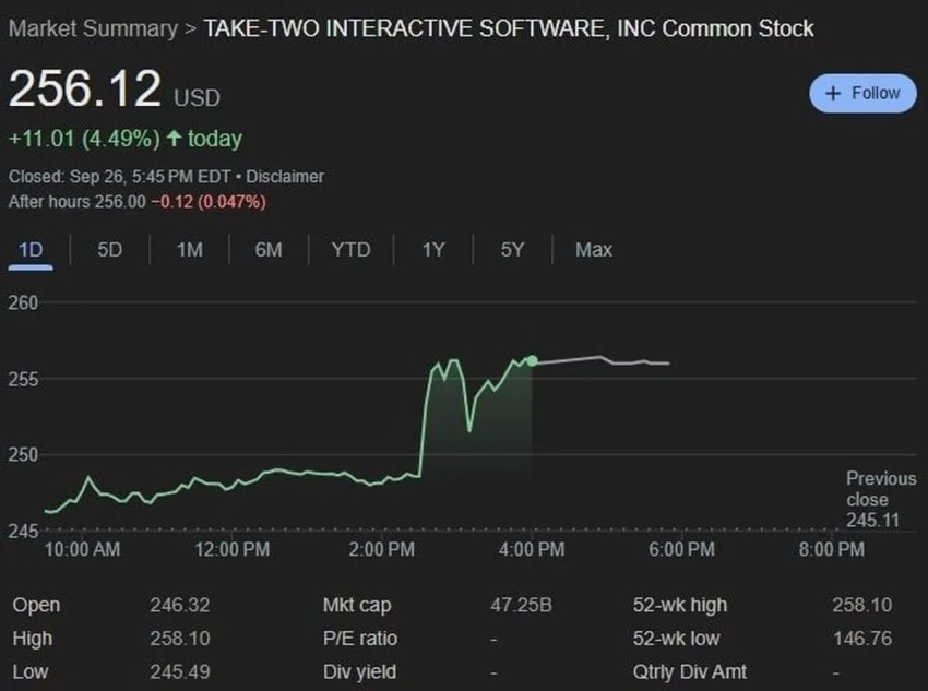 Акции Take-Two Interactive достигли исторического максимума